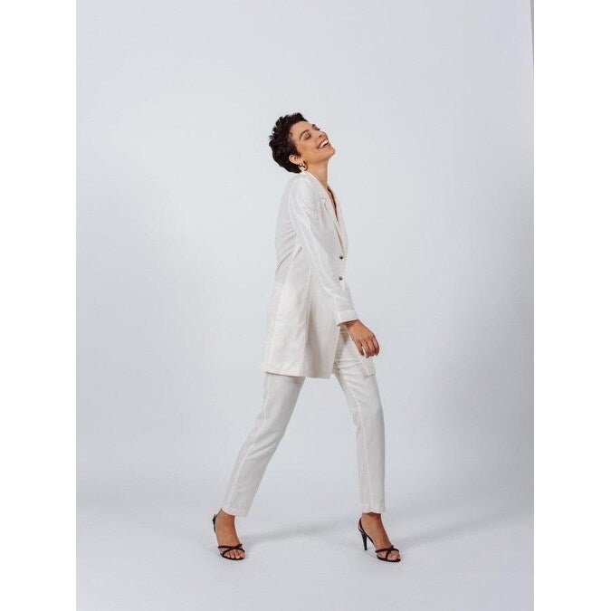 Description: These slim white pants will add a spark of charm to your wardrobe. Made with 100% Linen, these women’s trousers are super comfortable throughout the year and can be paired with any blouse or top for a chic, urban or classy look. The fit is true to size, and the high-waist design is sure to accentuate effortlessly. The pants are ideal for a long day at work and evening plans. These pants have pockets.  These white office trousers are available in sizes XS to XL, which are size-inclusive and fit regular. These are tailored to be worn all day. It has a mid-weight, non-stretchy fabric for a clean and classy look. Dry clean to maintain color and shape.
