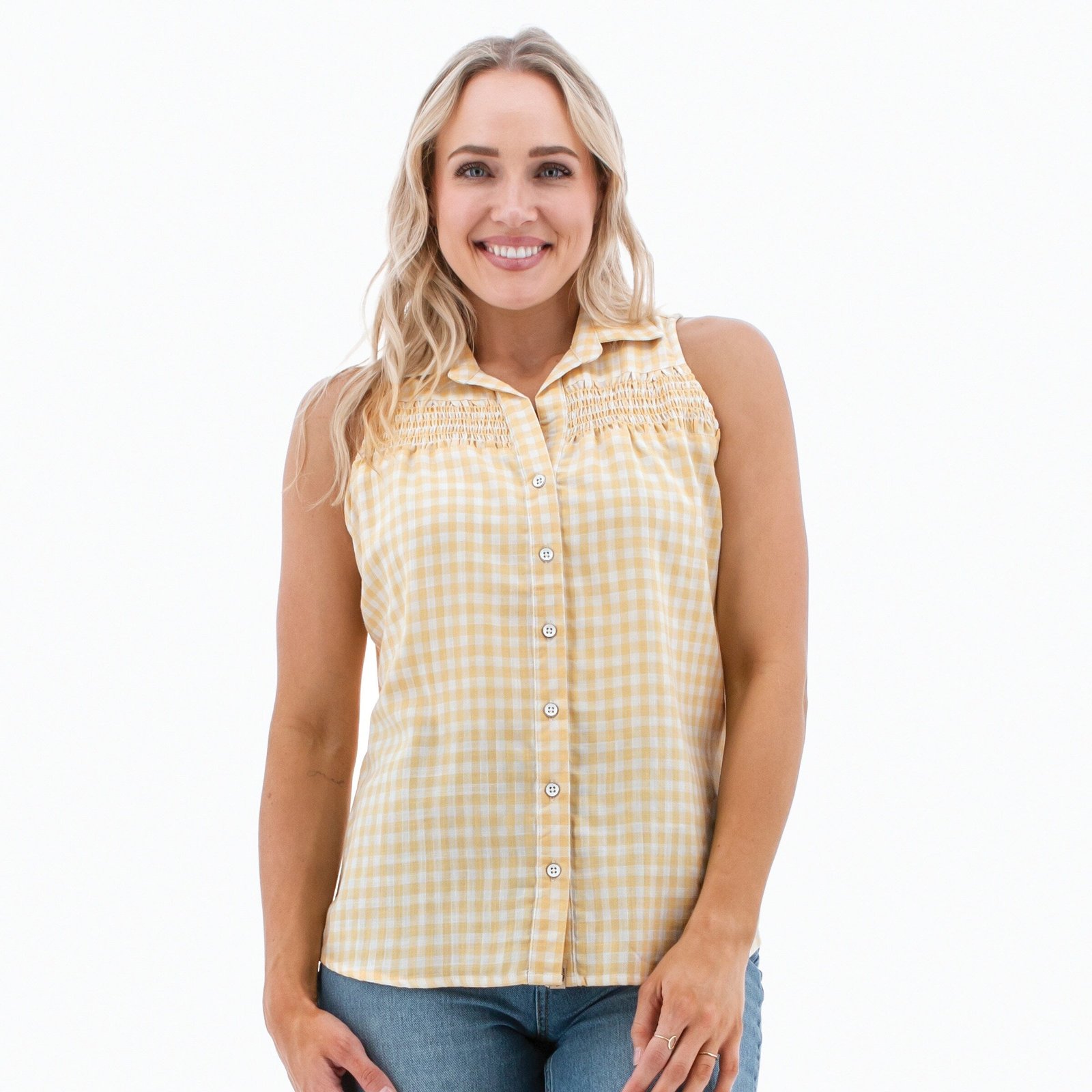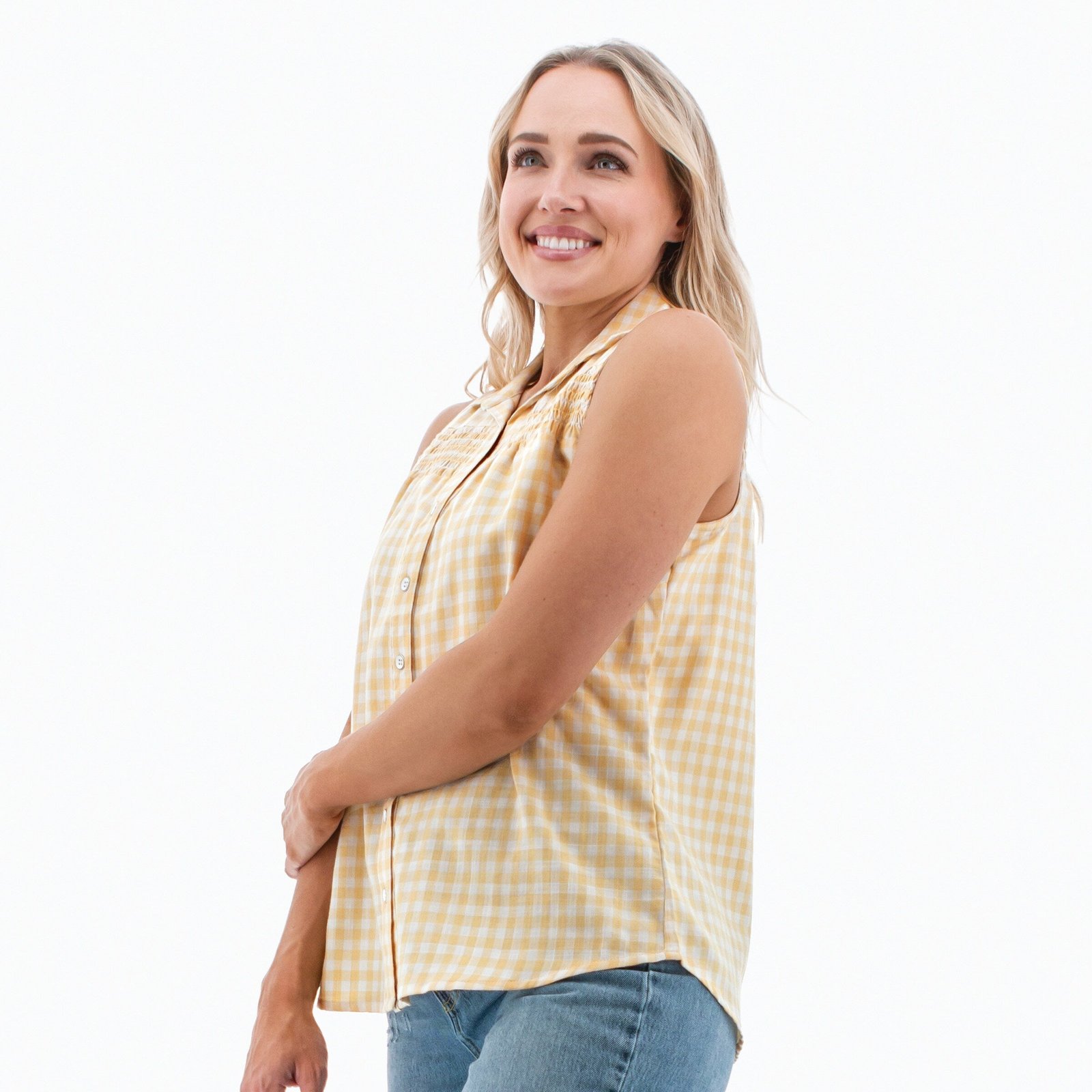 Easygoing and effortless, the Rae Tank Top embodies the ethos of Old Ranch Brands. This tank top takes classic style and pairs it with thoughtful details and quality design to bring you a tank top deserving of everyday wear, year after year. Cotton and polyester allow for a balance between breathability and moisture-wicking properties, as well as increased durability, drape, soft handfeel, and lightness compared to cotton alone. The Y-neck and smocking along the front and back yokes are flattering and wide bra-friendly straps make this easy. Pair with anything and everything, this top can stand up for any occasion.